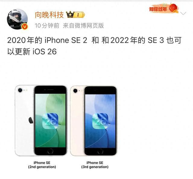 知名数码博主向晚科技 在微博爆料称:“2020年发布的iPhone SE 2和2022年的SE 3均被列入iOS 26官方支持名单,老机型用户喜提‘战未来’资格!”这一消息迅速引发热议,尤其是手持经典Home键设计的SE系列用户,直呼“苹果良心未泯”。
